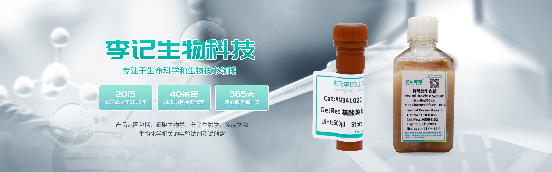 感恩返場(chǎng)|血清半價(jià)、胰酶&雙抗買(mǎi)2送1、細(xì)胞衛(wèi)士買(mǎi)1送1和元李記在2023年由和元生物(代碼:688238)和李記生物合資成立的,集研發(fā)、生產(chǎn)、銷(xiāo)售為一體的國(guó)產(chǎn)生物試劑公司,專(zhuān)注于生命科學(xué)和生物技術(shù)領(lǐng)域,致力于為客戶(hù)提供先進(jìn)技術(shù)、方便易用、經(jīng)濟(jì)高效的產(chǎn)品,產(chǎn)品范圍包括:細(xì)胞生物學(xué)、分子生物學(xué)、免疫學(xué)和生物化學(xué)相關(guān)的實(shí)驗(yàn)試劑及試劑盒。目前在全國(guó)40余座城市均有授權(quán)代理;直接服務(wù)終端超千家,涵蓋CRO、藥企、高校、醫(yī)院和科研院所;李記產(chǎn)品已幫助客戶(hù)發(fā)表數(shù)百篇SCI,多篇CNS。